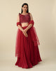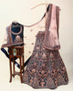 A one-of-a-kind Arctic Blue Organza lehenga detailed with amazing zari, sequins and stone work all over. The dupatta comes in a net fabric with heavy borderwork. It's a perfect fit for weddings and receptions.