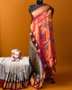 Grey Print Meheshwari Cotton Silk Saree with orange border