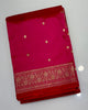 This Dark Pink Banarasi Silk Saree blends bold elegance with classic Banarasi craftsmanship. Designed in a rich dark pink shade, the saree features finely woven traditional Banarasi motifs that showcase the heritage artistry of Banaras. The luxurious silk fabric offers a smooth, graceful drape with a subtle sheen, making it an excellent choice for weddings, festive occasions, and traditional celebrations. It comes with a matching unstitched blouse piece, allowing you to style the blouse according to your preference.