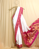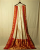 White Kanjivaram Pure Silk 9 Yard Saree with Red Gold Zari Border